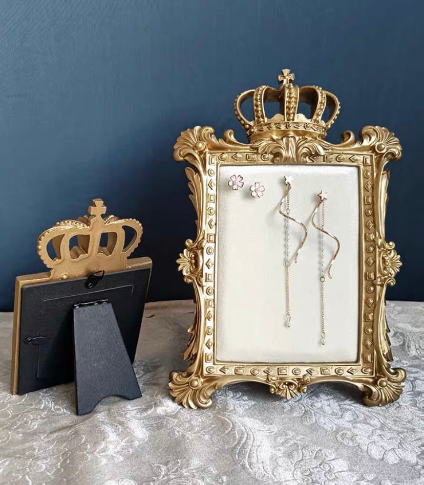 フォトフレームのように立てられるようになっています。クラウンデザインが高級感がありおしゃれです