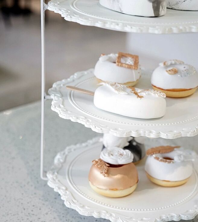 リボンデザインが可愛いアフタヌーンティーラック。お皿3枚付き。