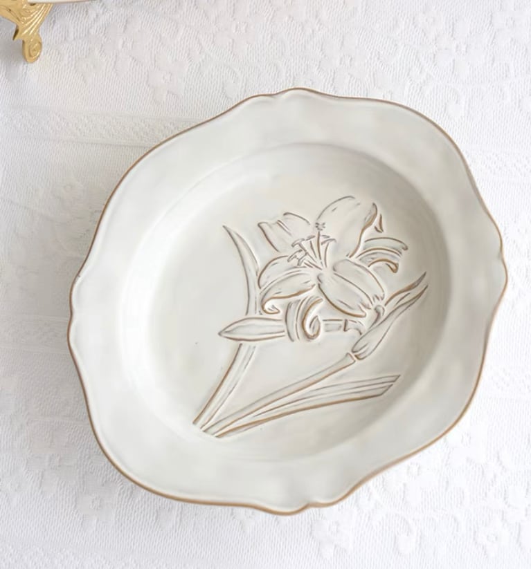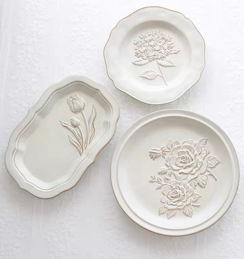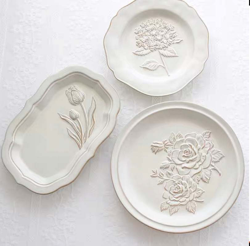 【4点セット】【予約】ホワイトフラワーアンティークデザインプレート